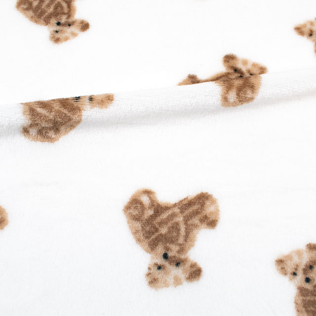 手書きのような可愛らしいテディベア柄の短い毛足のボアファー生地です。