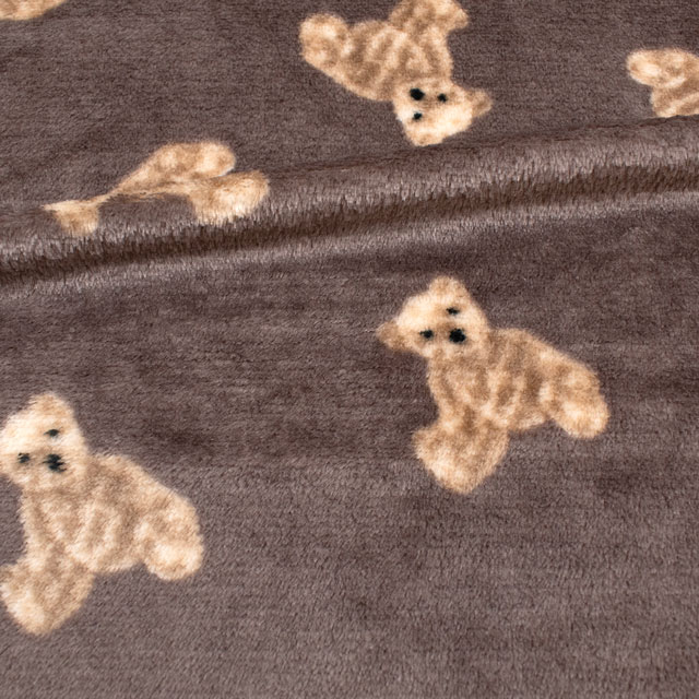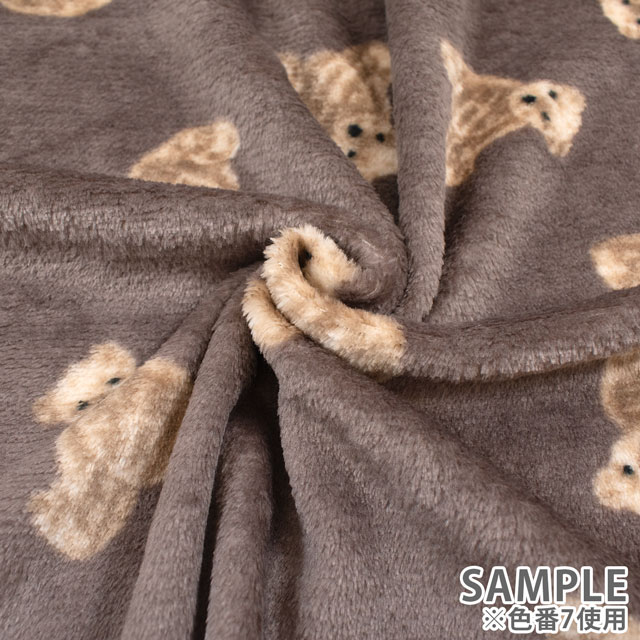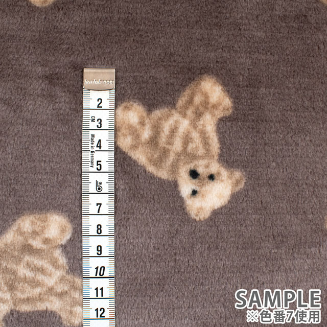 手書きのような可愛らしいテディベア柄の短い毛足のボアファー生地です。