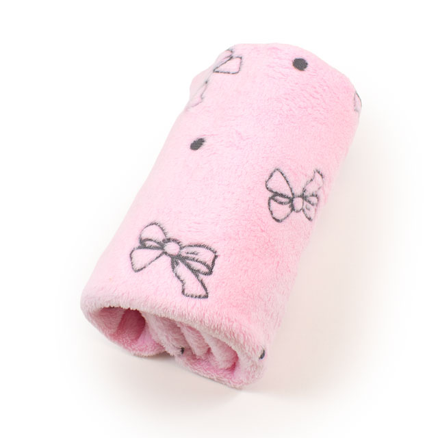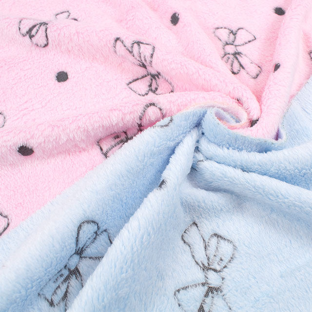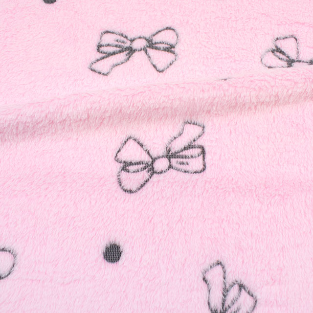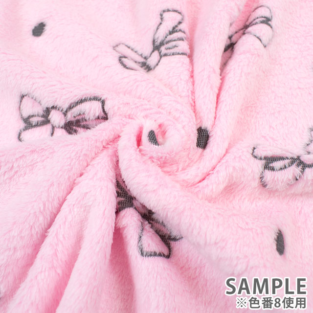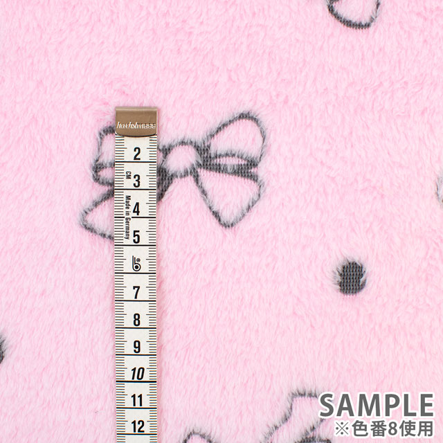 リボン柄が織り込まれた、短い毛足のボアファー生地です。