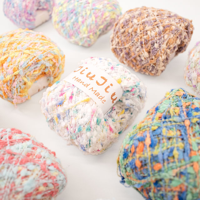 小さなキャンディーがついているような見た目がかわいいファンシーヤーンです。