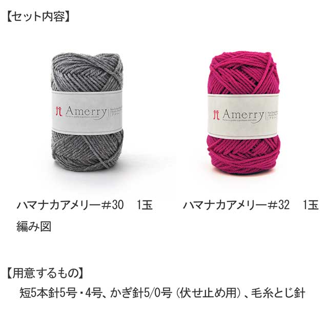 ●別途ご用意いただくもの:短5本針5号・4号、かぎ針5/0号(伏せ止め用)、毛糸とじ針
