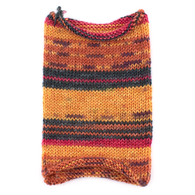 シンプルに編むだけでカラフルな模様が浮かびあがります。