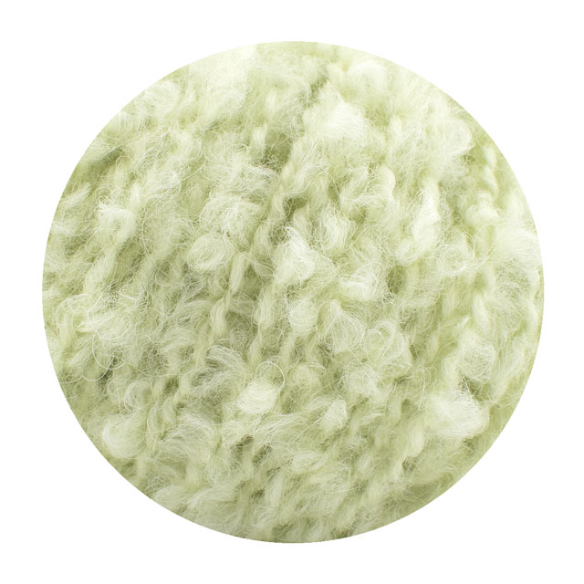 小さくて柔らかいブークレループは特殊な3層織りで形成されており、編んでみるとループが針から滑りにくく、安定して編むことができます。