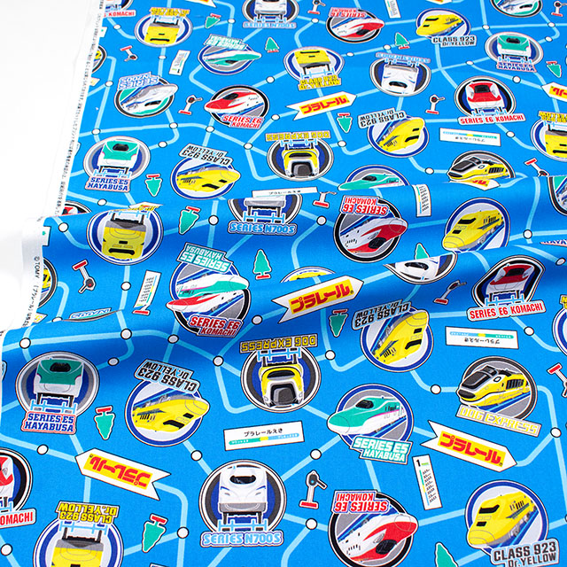 生地 プラレール 路線図柄/オックス(G-6133) 1B.ブルー 09Ae99_