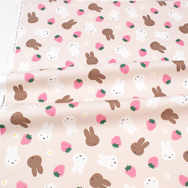 ミッフィーとメラニーといちごがかわいらしいプリント生地です。