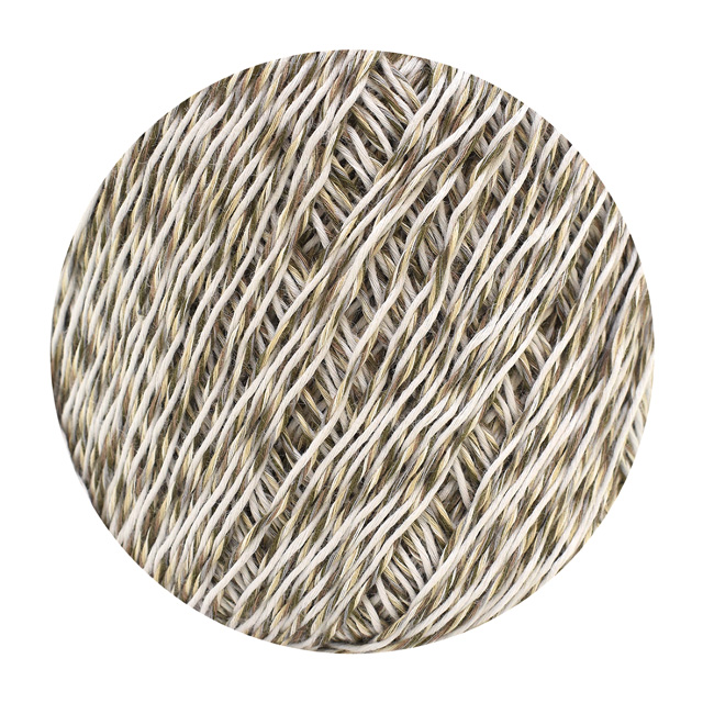 ベースカラー(1色18本撚り)と、アソートカラー・アクセントカラー(6色各3本撚り)の2つの撚り糸を甘撚りしたタイプで、サラっとしたソフトなタッチに仕上げています。