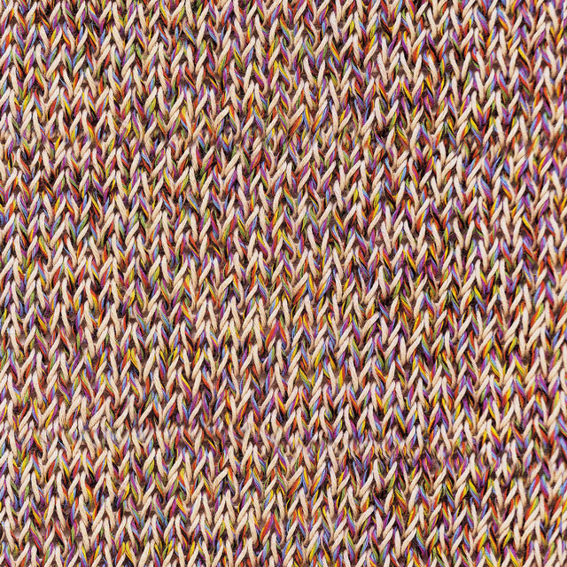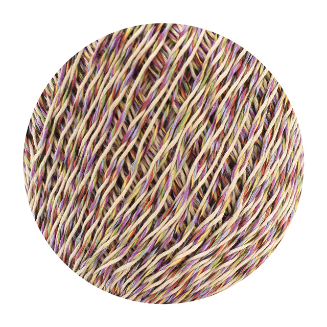 ベースカラー(1色18本撚り)と、アソートカラー・アクセントカラー(6色各3本撚り)の2つの撚り糸を甘撚りしたタイプで、サラっとしたソフトなタッチに仕上げています。