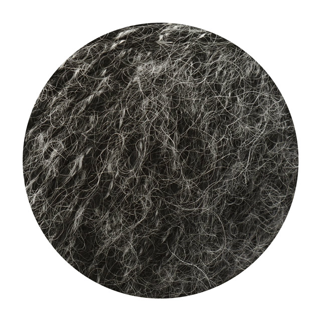 アルパカ・ウール混の芯糸にロングピッチプリントのモヘアを撚糸。