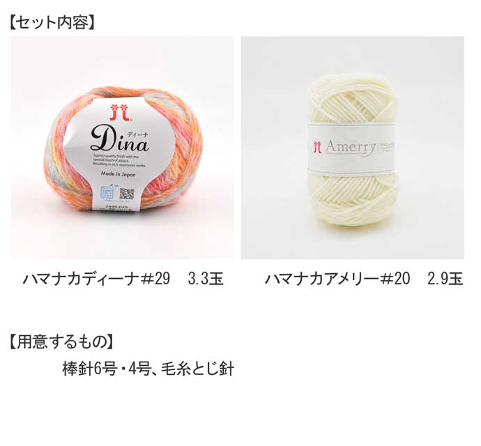 ●別途ご用意いただくもの:棒針6号、4号、毛糸とじ針