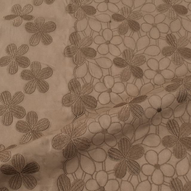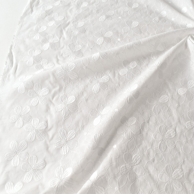 2種類の大きなお花と葉っぱがデザインされたコットンのレース生地です。
