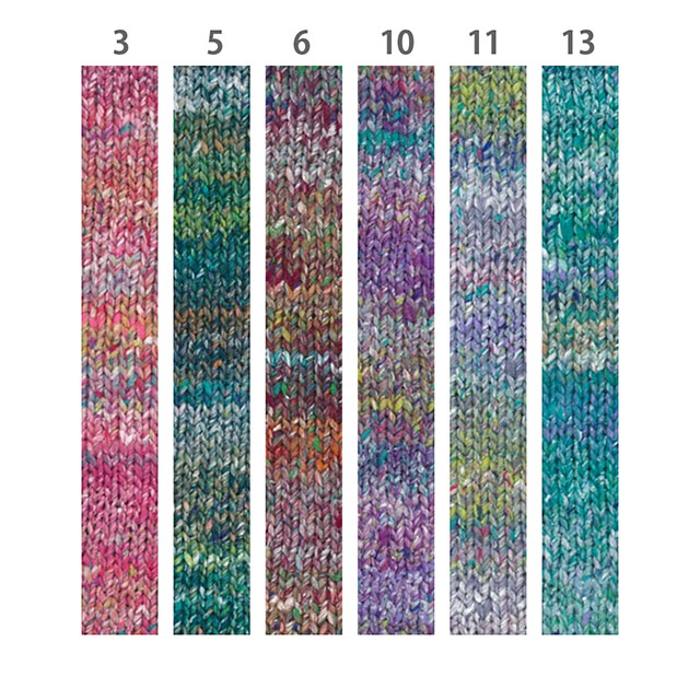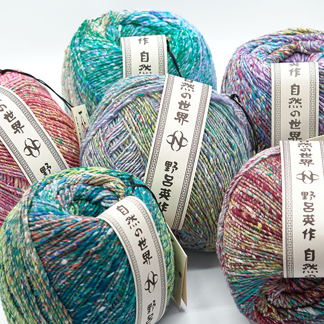 何色にも染められたシルクが、美しく染められたウールとブレンドされています。