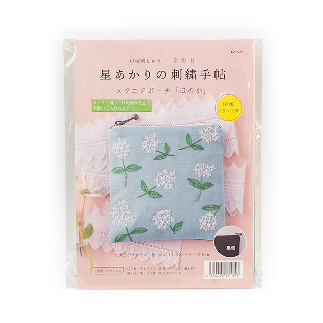 「星あかりの刺繍手帖」シリーズに、バッグの中にすぽっと入るスクエアポーチが登場です。