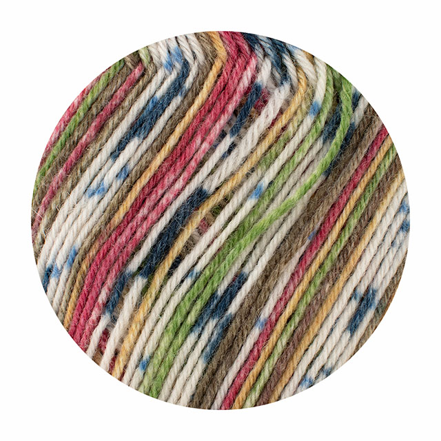 元々はソックヤーン(靴下専用毛糸)として生まれた糸なので、ナイロンを混紡し強度を増しています。