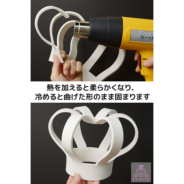 加工の際の熱処理は、ヒートガン等をご使用ください。火気に近付けると火災の原因となる可能性がございます。