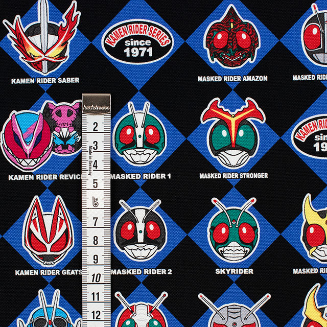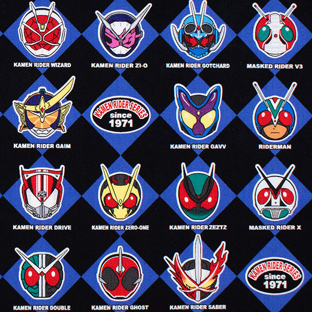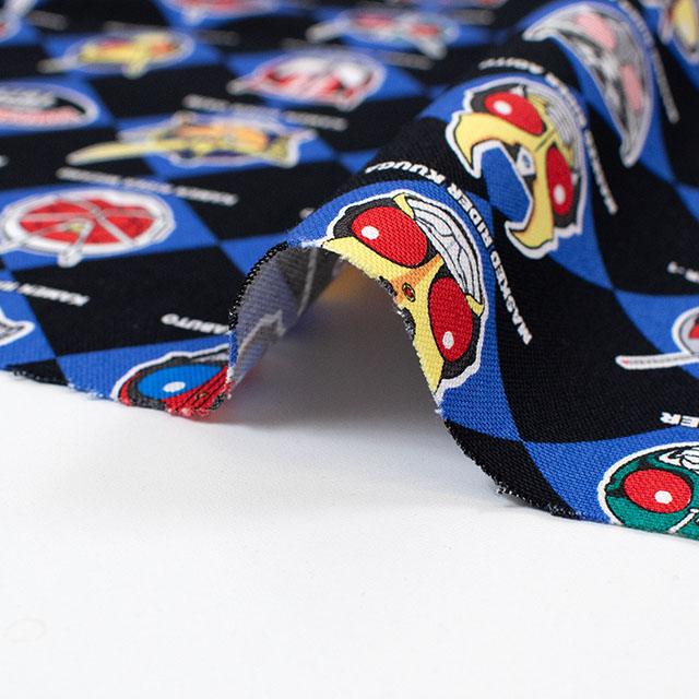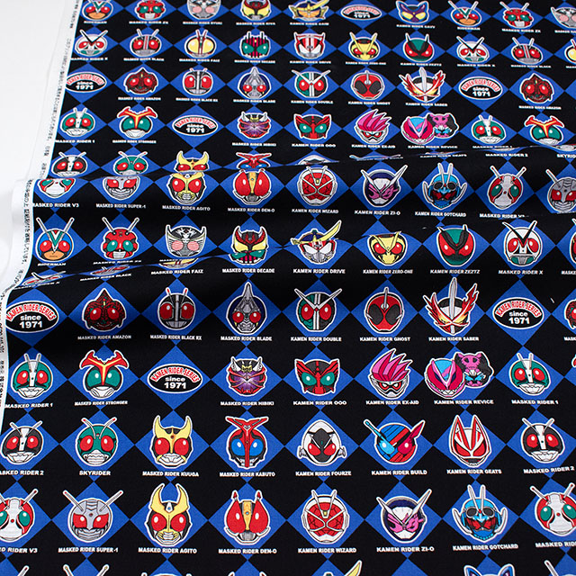 歴代の仮面ライダーがいっぱいのプリント生地です。