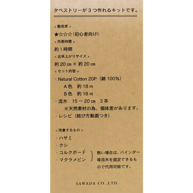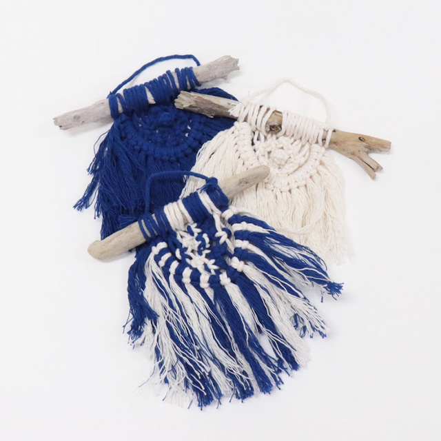 マクラメタペストリーが3つ作れます。色の組み合わせもお楽しみください。
