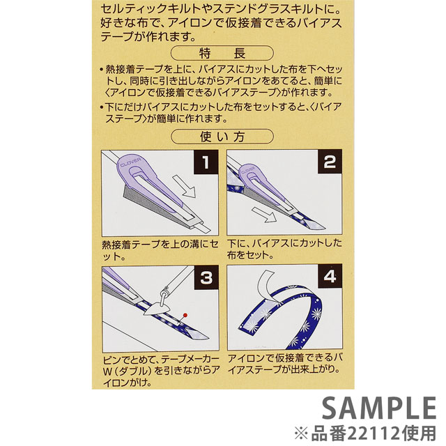 裁ち布を通すだけで、お好みの布の両折バイアステープが簡単に作れる便利グッズです。