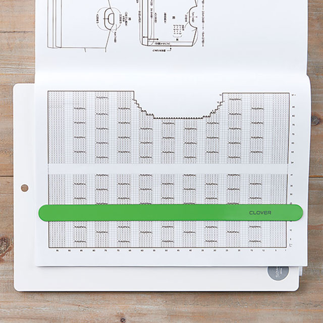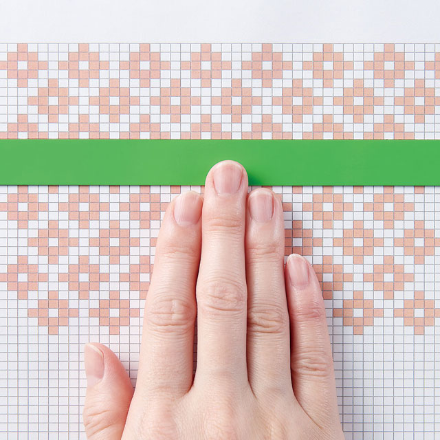 グリーンのマグネットは編み図記号や色分けされた図案が見やすく、軽い力でスライドさせることができるので作業がはかどります。