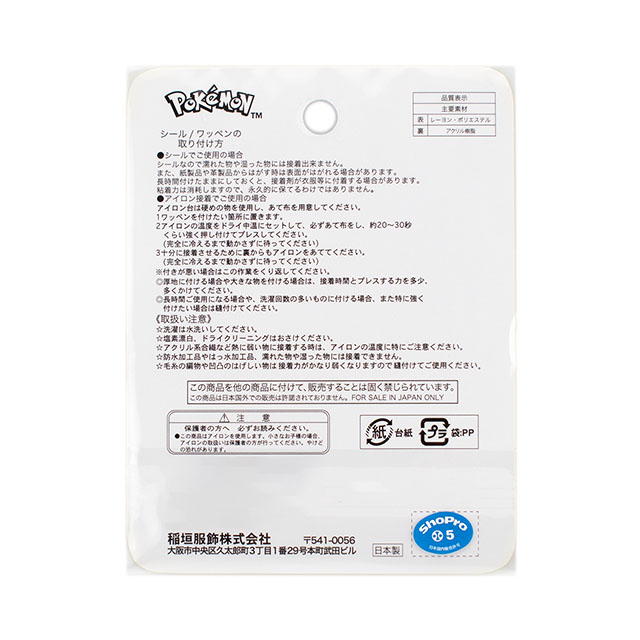 アイロン接着でも、シールとしてもご利用いただけるポケットモンスターのワッペンです。