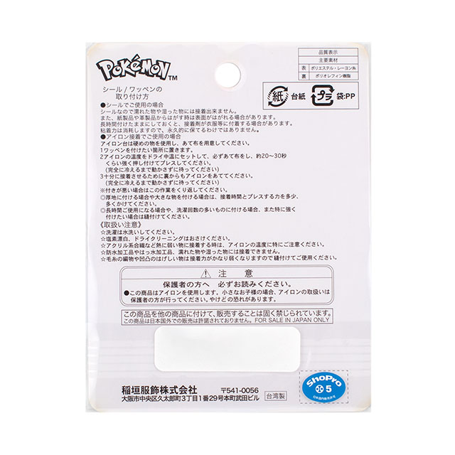 アイロン接着でも、シールとしてもご利用いただけるポケットモンスターのワッペンです。