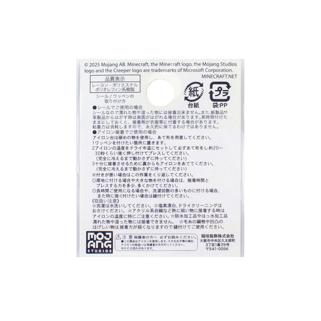 大人気ゲーム「マインクラフト」シリーズの小さなワッペンです。