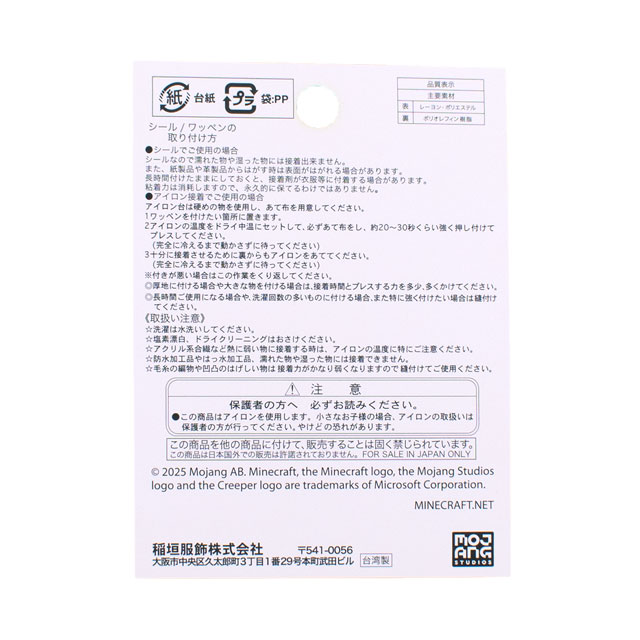 大人気ゲーム「マインクラフト」シリーズの大きなワッペンです。