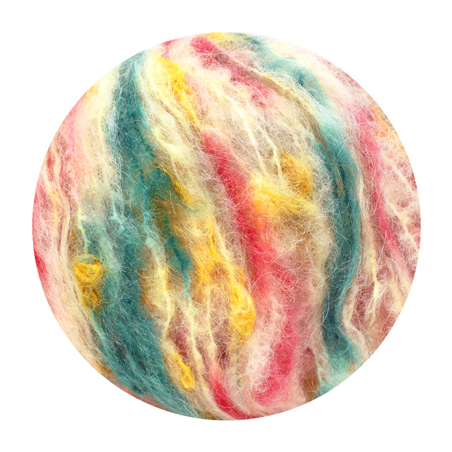 - ●素材:ウール40%(エクストラファインメリノ100%使用)、モヘヤ36%(スーパーキッドモヘヤ100%使用)、ナイロン13%、コットン11%