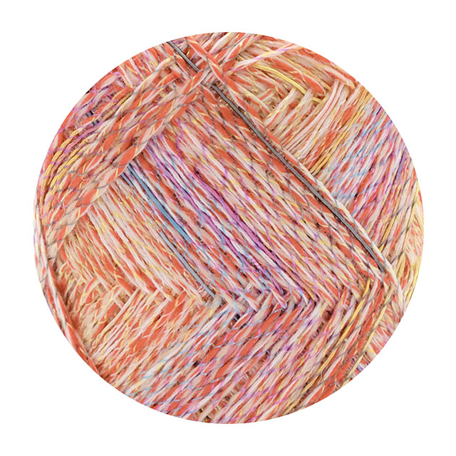 毛混の単色糸に5色のロングピッチ段染糸をダブルカバーしたファンシーヤーンです。