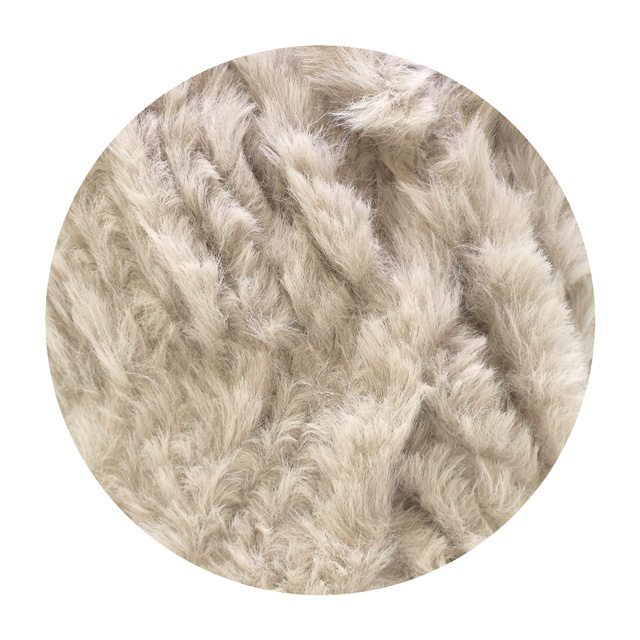 太番手のファーながら軽くて風合いもよく、フェイクファーとしての仕上がりもとても良い糸です。