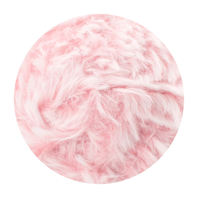 太番手のファーながら軽くて風合いもよく、フェイクファーとしての仕上がりもとても良い糸です。