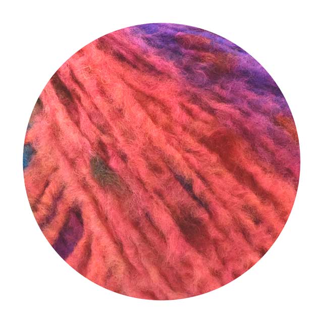 地糸もドットも段染めで、イタリアらしいきれいで奥深い色目なので、シンプルに編むだけで映えます。