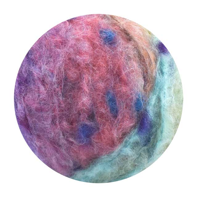 毛足の縮れた太目の起毛糸に、カラフルでドットのようなふくらみ部分のある、個性的なファンシーヤーンです。