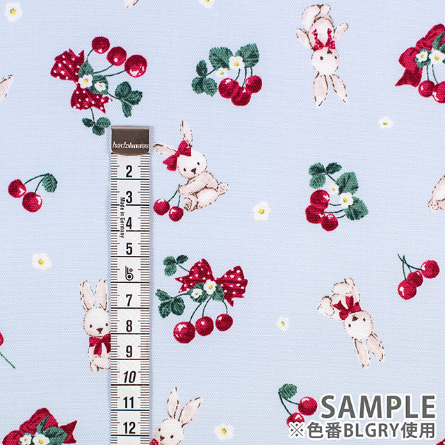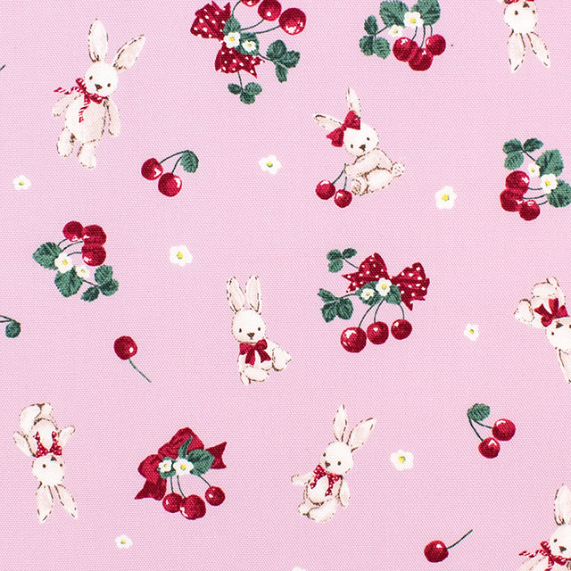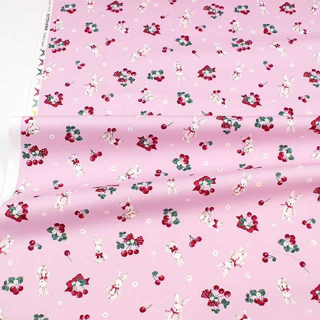 かわいいウサギとおいしそうなサクランボの総柄生地です。