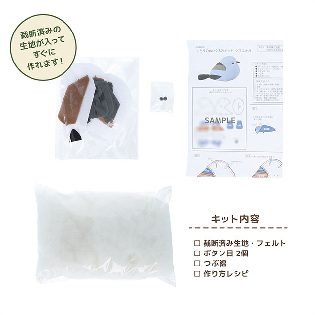 ぬいぐるみ作り初心者さんにも優しいキットとなっています。