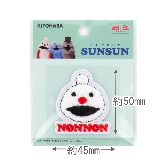 パペットスンスン「ノンノン」のもこもことしたパイルワッペンです。