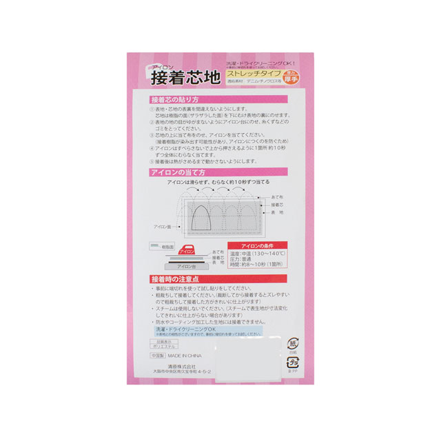 アイロンで接着する際は、あて布をして中温でかけてください。