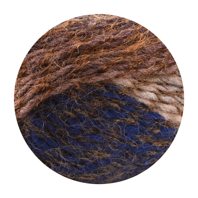 簡単な編地でも色が混ざり合いながら表情豊かに表現できるヘアリー感のある糸。