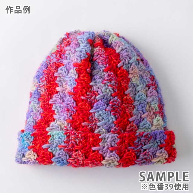 5色のかすりと杢糸が交互に切り替わりオリジナリティある編地が楽しめます。