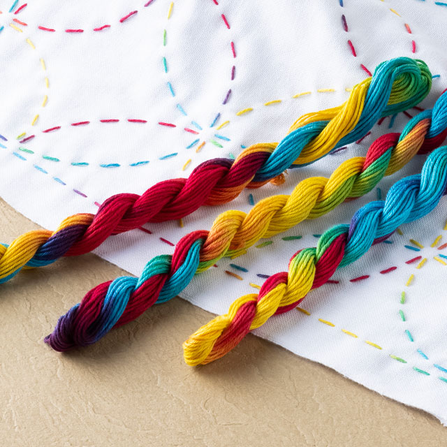 染-marche(ソメマルシェ)専用の刺し子糸は、1つの束に20mの糸が3かせ入っています。