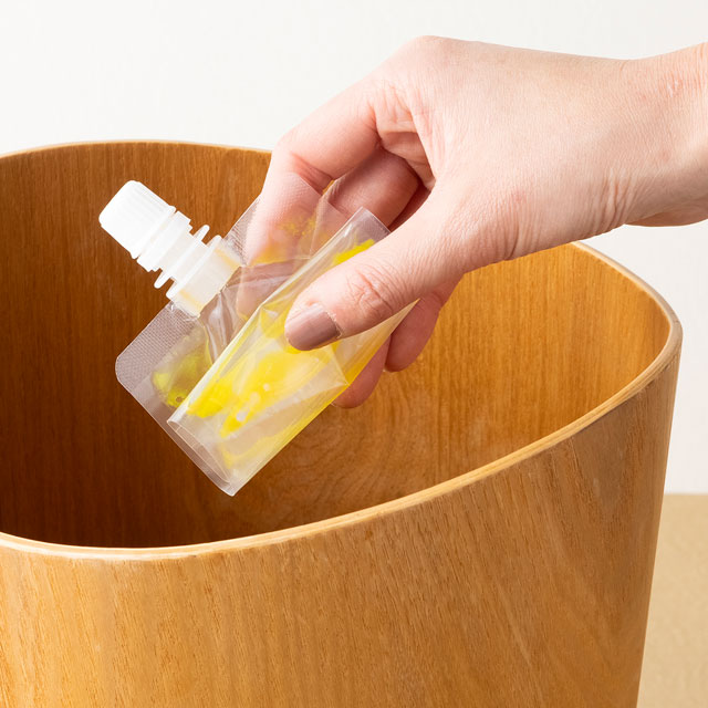 使い終わったら小さく畳んで処分できるエコなパウチタイプです。