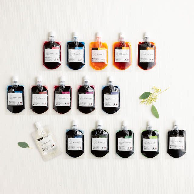 染-marcheは、液体染料を入れた専用のペンで染める糸染めブランドです。