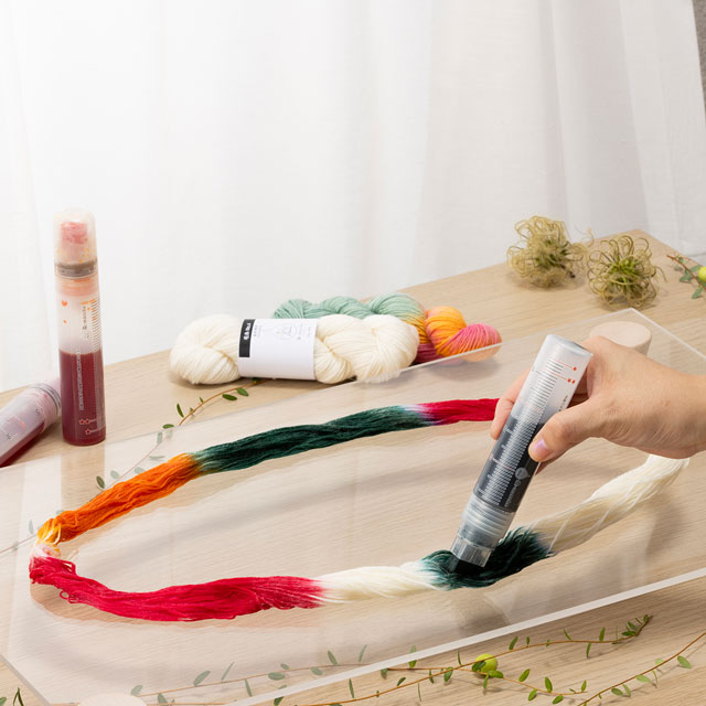 染-marcheは、液体染料を入れた専用のペンで染める糸染めブランドです。
