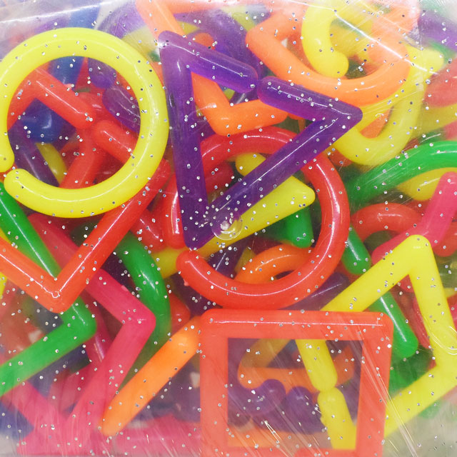 ハート・スターなど、キュートなフォルムのレインボーカラーのジャンボプラチェーンがたっぷり入ったセットです。