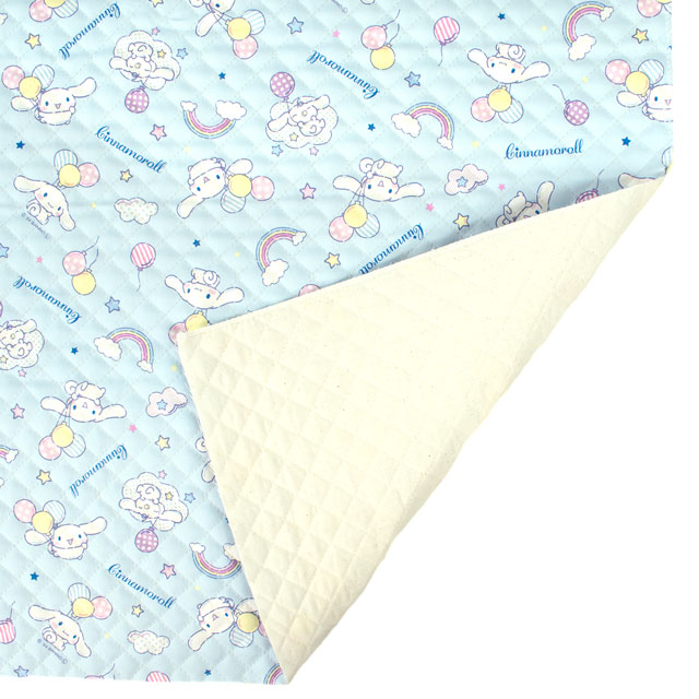 かわいいバルーンを持ったシナモロールと虹の柄のキルティング生地です。