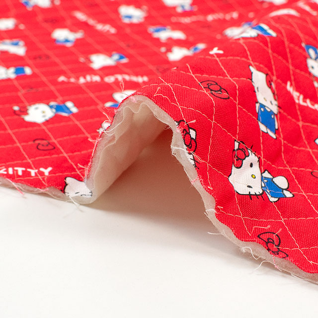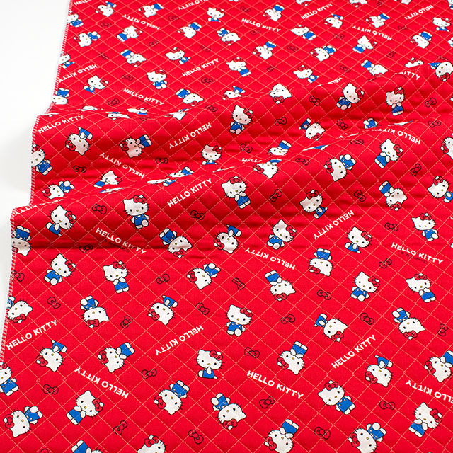 ハローキティのベーシックなイラストのキルティング生地です。
