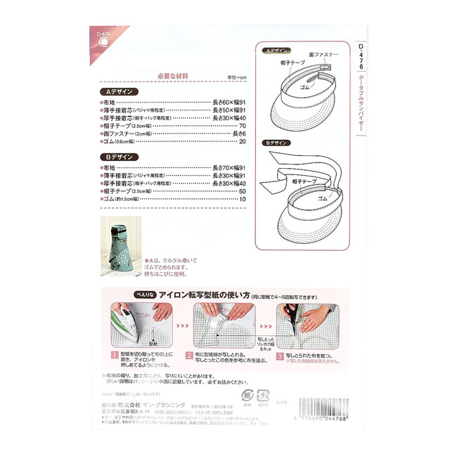 大人用のポータブルサンバイザーが作れるソーイング用の実物大型紙です。
