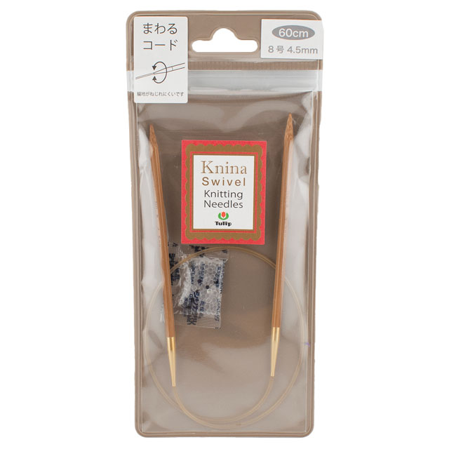 コードがくるくる回転するため、編んでいてねじれない、竹製の輪針です。