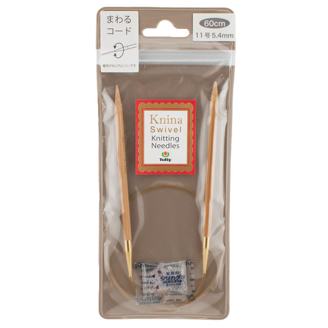 コードがくるくる回転するため、編んでいてねじれない、竹製の輪針です。