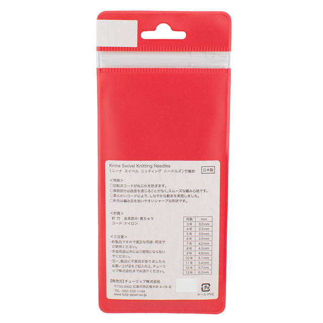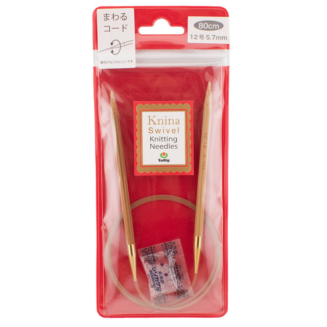 コードがくるくる回転するため、編んでいてねじれない、竹製の輪針です。
