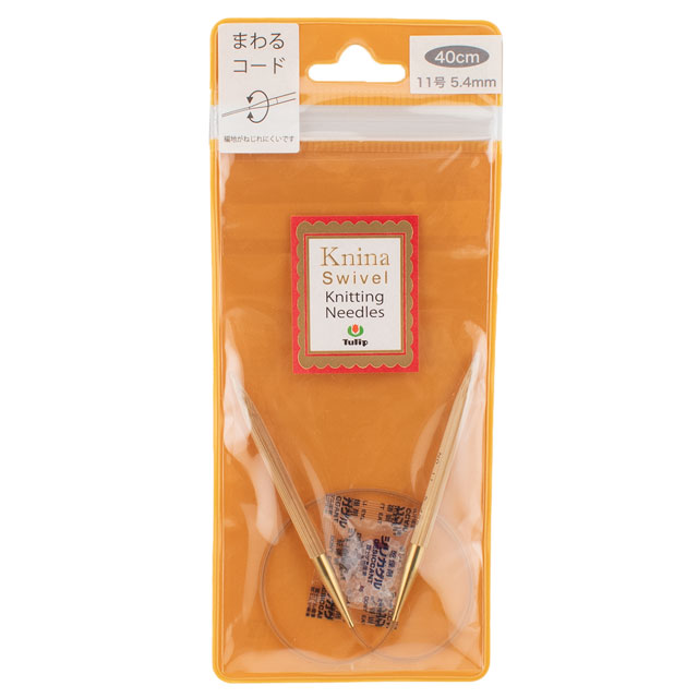 コードがくるくる回転するため、編んでいてねじれない、竹製の輪針です。